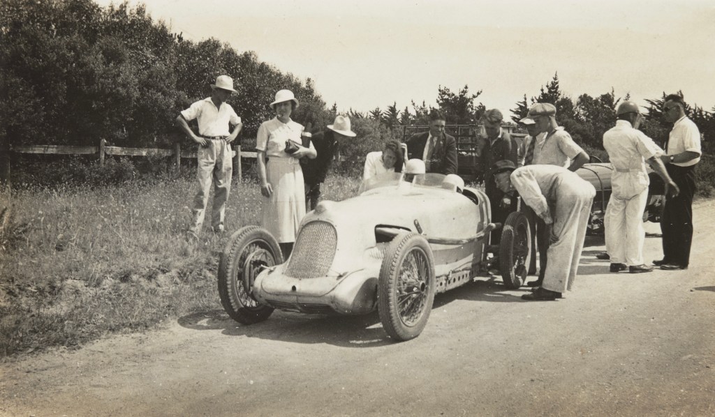 Such an evocative shot of the first couple of Australian motor racing, Melburnian’s Barney and Bess Dentry in their Riley 9 Brooklands. Perhaps during the 1936 Victorian Sporting Car Club Trophy held on the triangular Phillip Island road circuit on New Year’s Day.