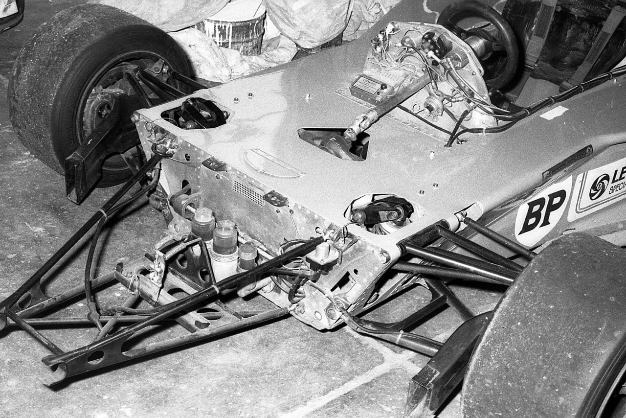 Brakes were Lockheed ‘Can-Am’ calipers, rotors 10.5 inches in diameter, outboard at the front and inboard, beside the gearbox, at the rear. The bodywork was all enveloping with the airbox neatly covering the engine aiding airflow to the rear wing. Wheelbase of the new machine was 101 inches, front track 65 inches, rear 62.5 inches, the length was 170 inches, the whole lot weighed a claimed 1270 pounds distributed 34/66 % front to rear.