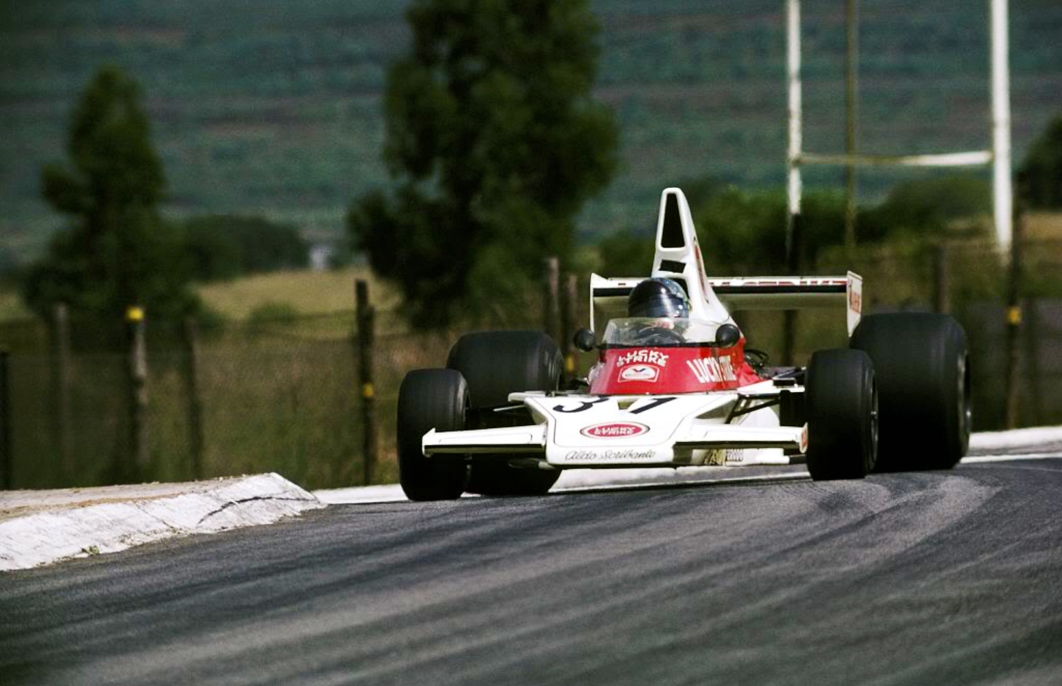 Dave Charlton delicately drifts M23/2, South African GP Kyalami 1975. He finished 14th in the race won by countryman Jody Scheckter’s Tyrrell 007 (reddit.com)