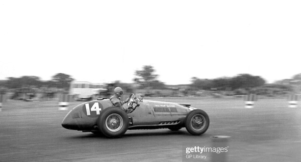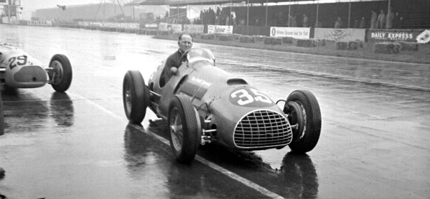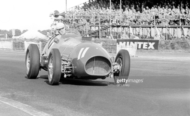 Peter Whitehead in Thinwall 3, Ferrari 375 during the 1951 British GP at Silverstone, 9th in the race won by Froilan Gonzalez Ferrari 375- Ferrari’s first championship GP win