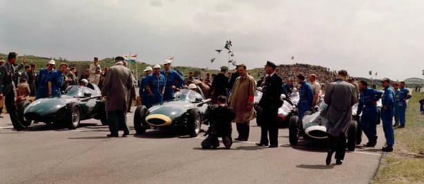 Zandvoort 1958 front row- Lewis-Evans at left on pole, then Moss and Brooks at right (Unattributed)