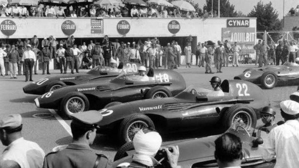 The Vanwall Team in the Monza paddock 1957- Moss won the Italian GP in ‘VW5’.