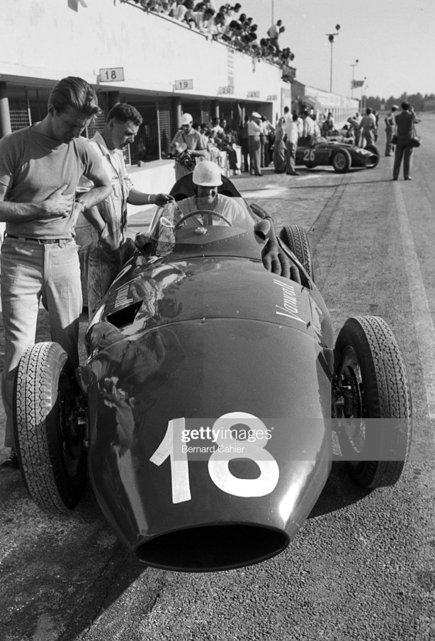 Tragedy struck on lap 42 when the engine in the Stuart Lewis-Evans Vanwall blew, the car’s rear wheels locked then the car careered into a small stand of trees- the vulnerable tail tank ruptured and caught fire, Lewis-Evans jumped out but was disoriented and headed away from fire marshalls who may have been able to minimise the terrible burns from his overalls- despite being flown home to the UK he died in a specialist hospital six days later.