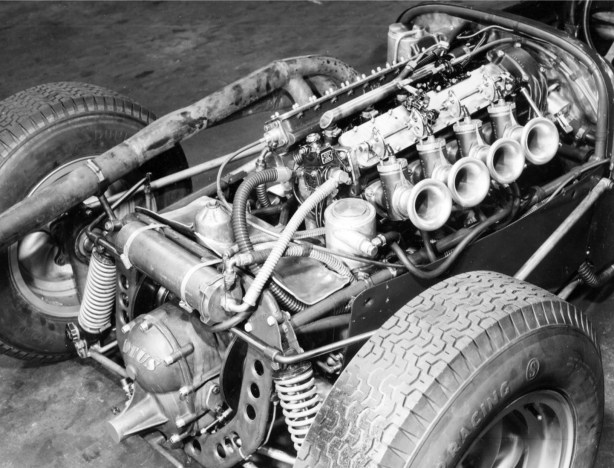 Vanwall engine installation- very neat and cohesive, in Lotus 18 chassis ‘901’ (GP Library)