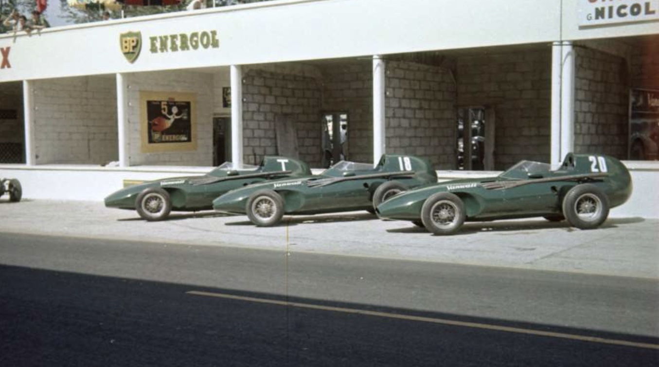 The Vanwall Team in the Monza paddock 1957- Moss won the Italian GP in ‘VW5’.