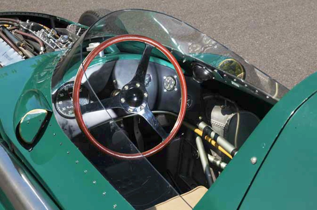 Cockpit by the standards of the day is comfortable, swivelling face level vents to keep the driver alive in the carefully faired space, the gearbox notoriously difficult to use. The car was very fast but not as forgiving to Moss as a 250F. Car needed the best to get the best from it. This is chassis VW9 in modern times.