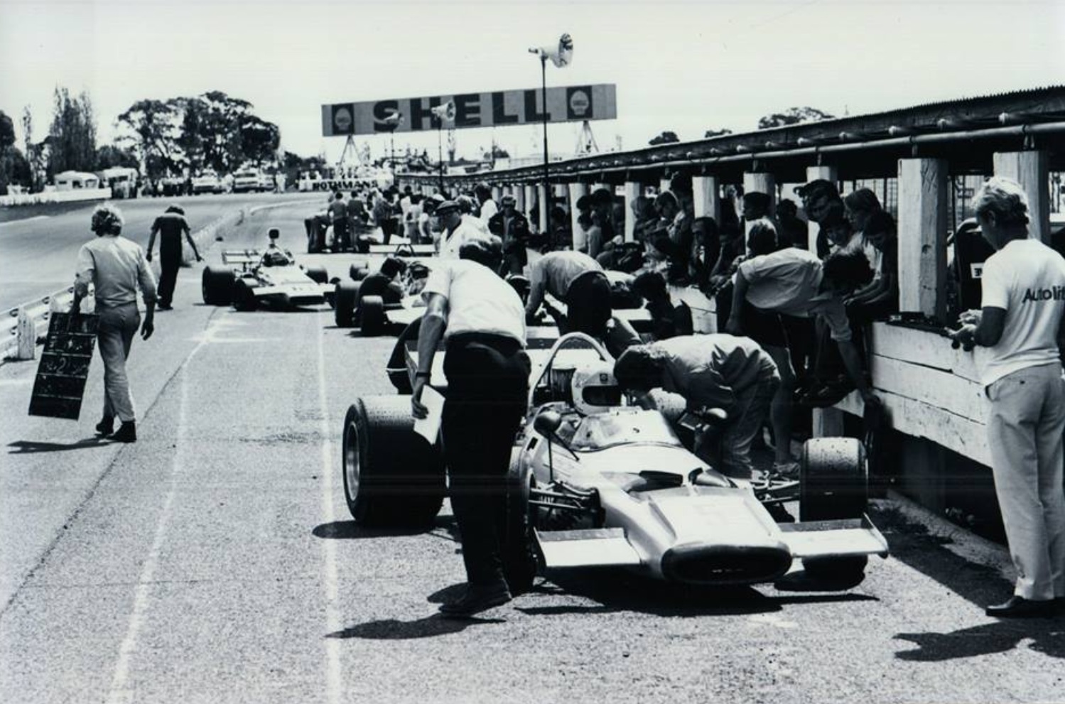 In those days the paddock was in the infield, inside Shell Corner, or turn 1 and extended across the track to the inside of Peters or Torana Corner, now turn 3, or the Corner onto the back straight. It was lower than the surrounding infield and was like a private little Mecca for racers and enthusiasts alike.