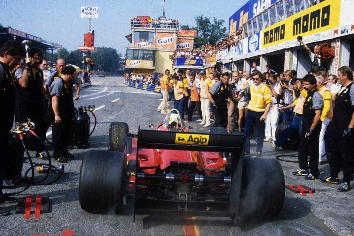 Pitstop at Monza in 1985, Ferrari 156/85. Q 10 and 5th in the race won by Alain Prosts’ McLaren MP4/2B TAG. (unattributed)