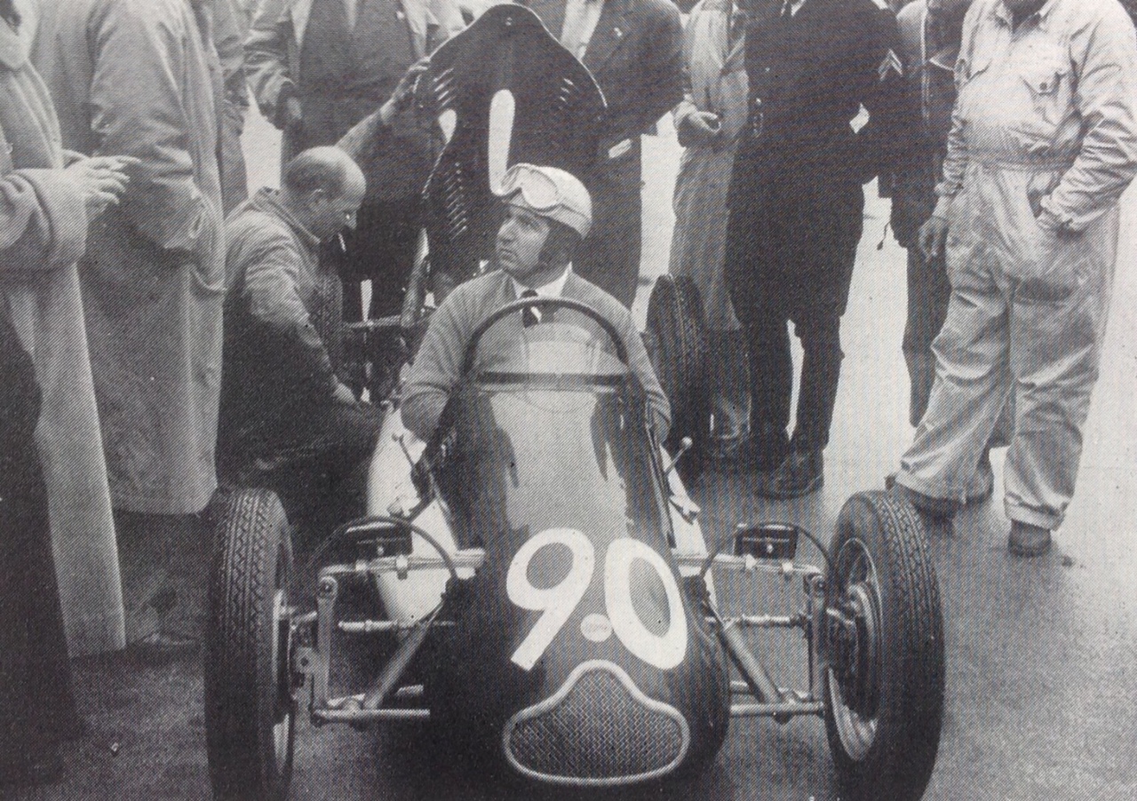 Alberto Ascari looking dapper in shirt and tie but a little uncomfortable at the wheel of the new-fangled mid-engined Cooper…