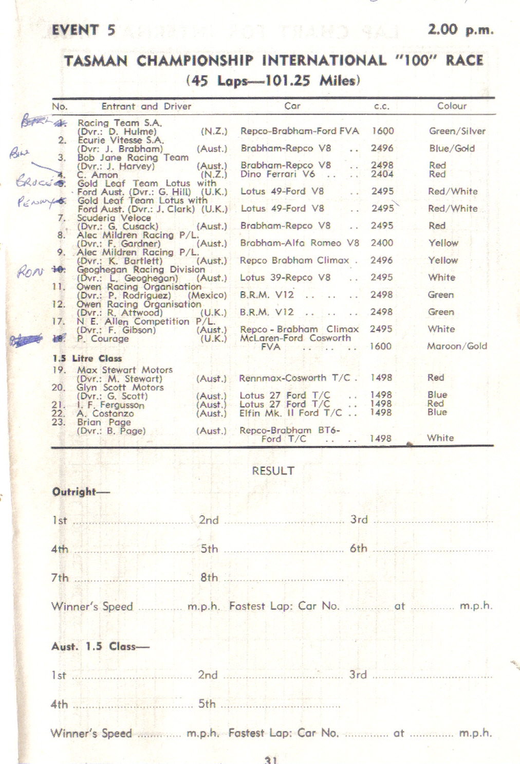 Stephen Dalton for the race program and ‘Racing Car News’ material