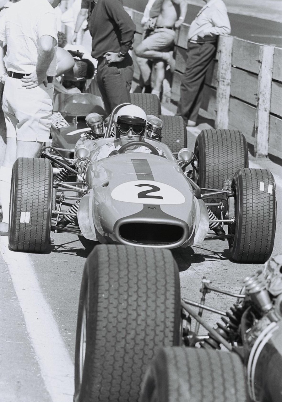 No seat belts, no fuel cells, no on-board fire extinguishers, no roll cages, no fireproof clothing. I was driving the Tasman Series in New Zealand and was wearing a polo-shirt made of nylon. When Jim Clark saw me in this he explained how dangerous nylon was in the event of a fire. Jim gave me a pair of his Dunlop Racing overalls. Boy, did I think I was smart wearing these and they were fireproof so I could go faster! Actually they gave you about 5 extra seconds in the event of a fire. They were made of cotton and soaked in a fire retardant. Rather different from today’s suits.
