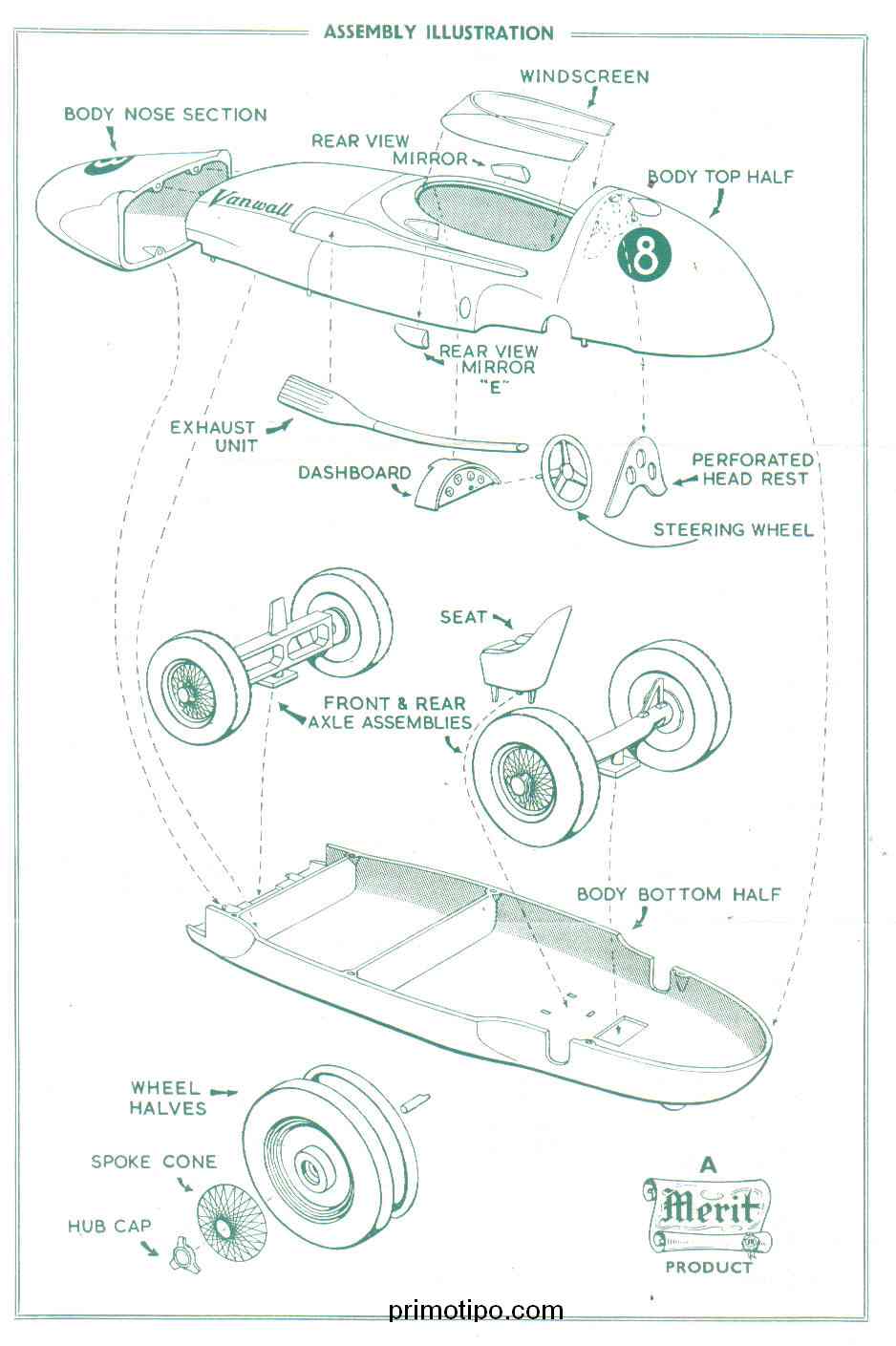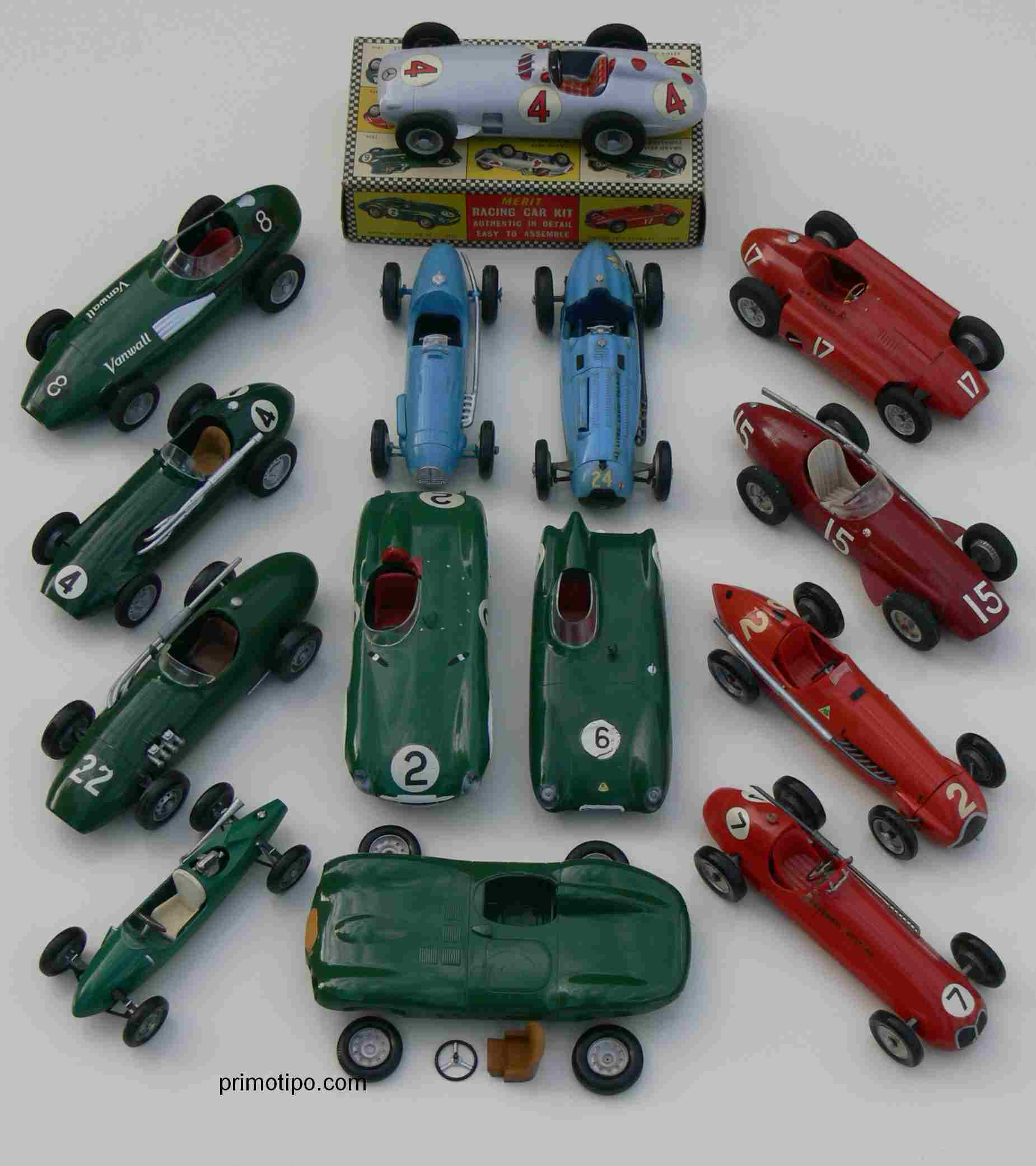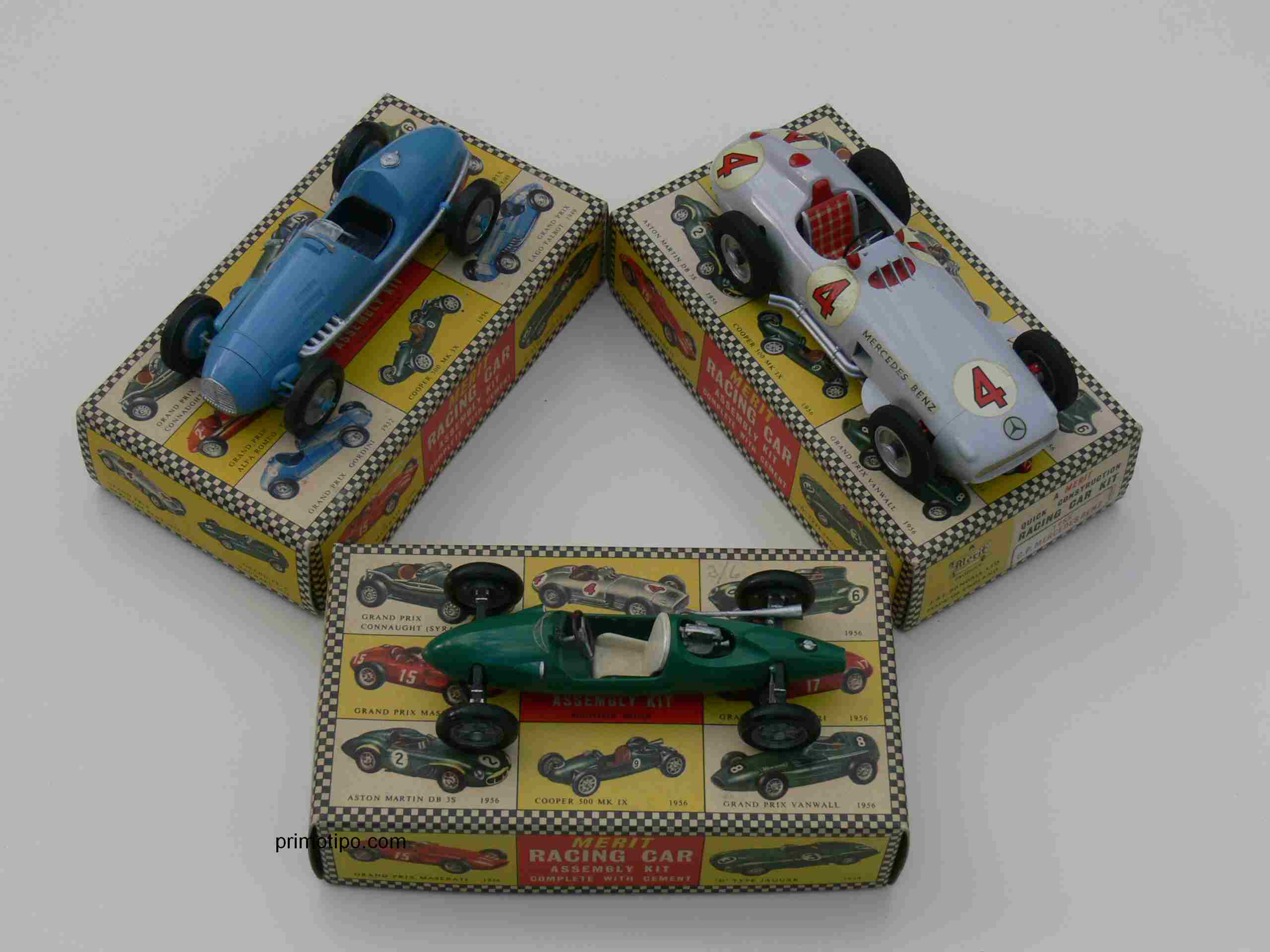 The Merit brand from North London, UK-based toymaker, J & R Randall Ltd was an early player in the model kit industry. Racing Cars weren’t their only focus, ships, planes and even a Model T Ford played a part too. But here at primotipo.com the racing cars are really the only ones that matter.