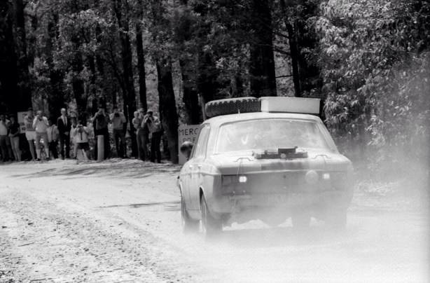 ‘The Hillman Hunter seemed an unlikely contender, but Andrew Cowan had this low budget, works car in second place to Bianchi by the end of the Numeralla to Hindmarsh Station stage. He then simply inherited the lead when Bianchi’s Citroen was cruelly eliminated when it was hit by an out of control spectator car on the following transport stage’.