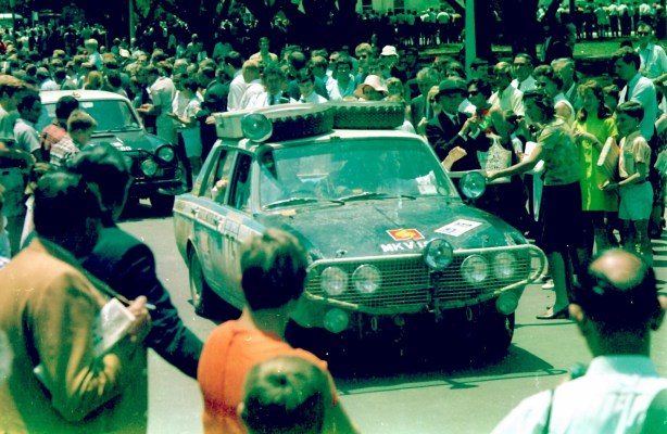 As it happened, the result was determined on the subsequent, easy transport stage when the leading car, the Citroen DS21 of Lucien Bianchi and Jean Claude Ogier, was put out of the event in a crash with an out of control spectator car. Andrew Cowan/Coyle/Malkin in a Hillman Hunter unexpectedly inherited the lead and won the Marathon. A total of 56 cars reached the finish line in Sydney.’