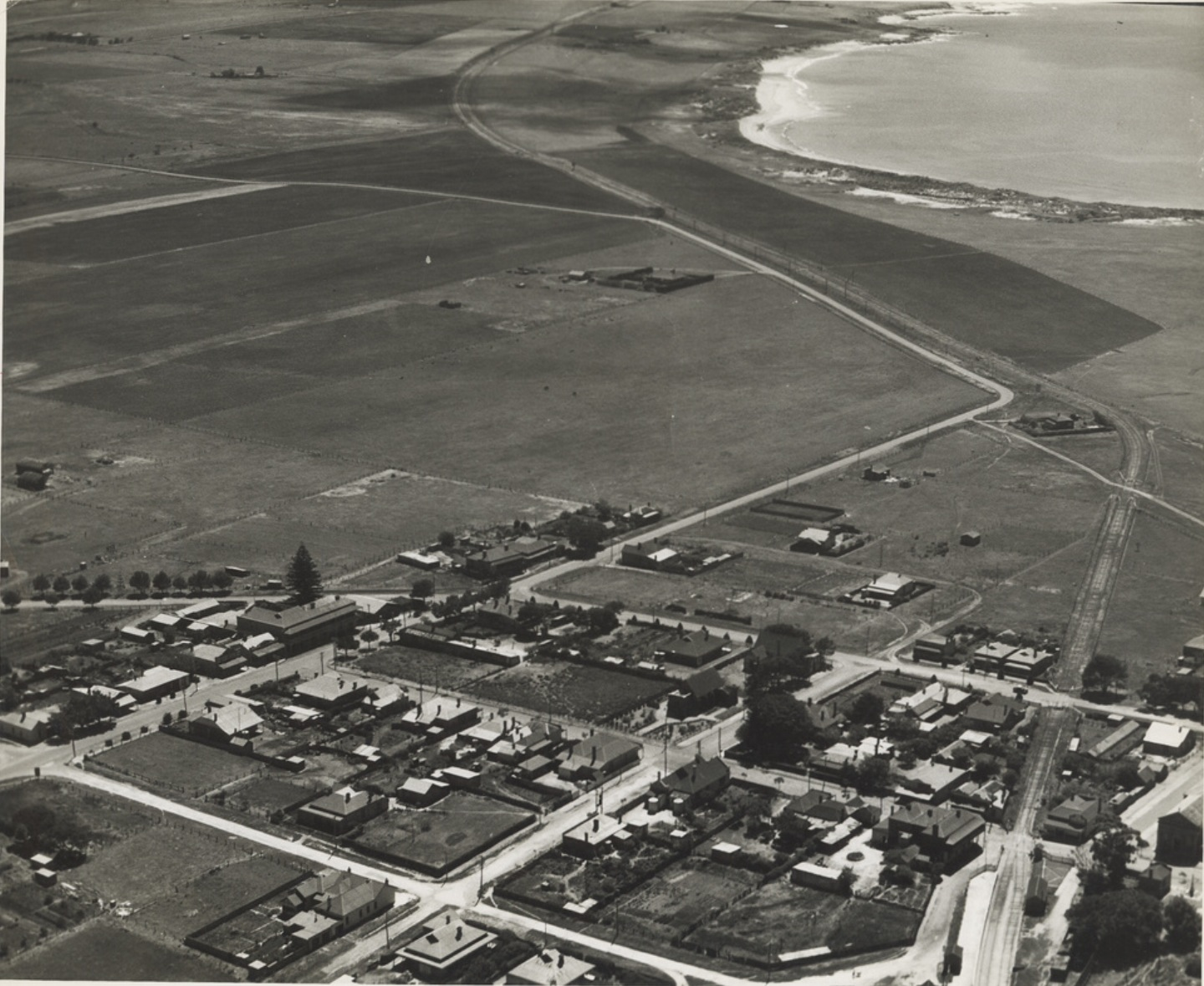 Perhaps; The cars race from top left to right, along ‘Brick Kiln Straight’ then the RH tight corner ‘Sea View Corner’, then the RH kink towards the bottom of the photo is the fast RH taking the cars into Port Elliott.(State Library of SA)