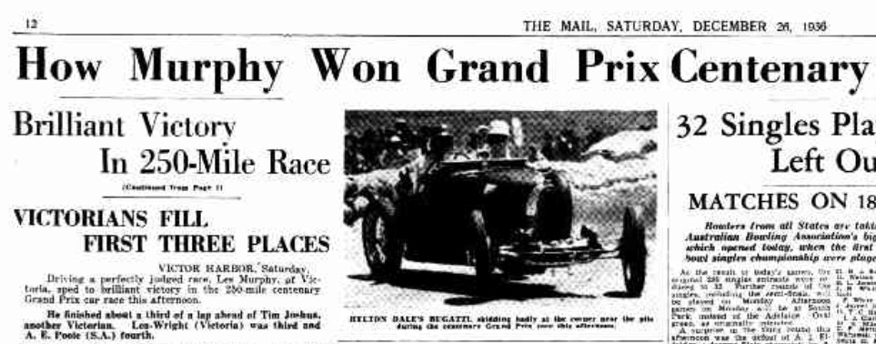 How Murphy Won Grand Prix: Brilliant Victory In 250-Mile Race.VICTORIANS FILL FIRST THREE PLACES VICTOR HARBOR. Saturday.