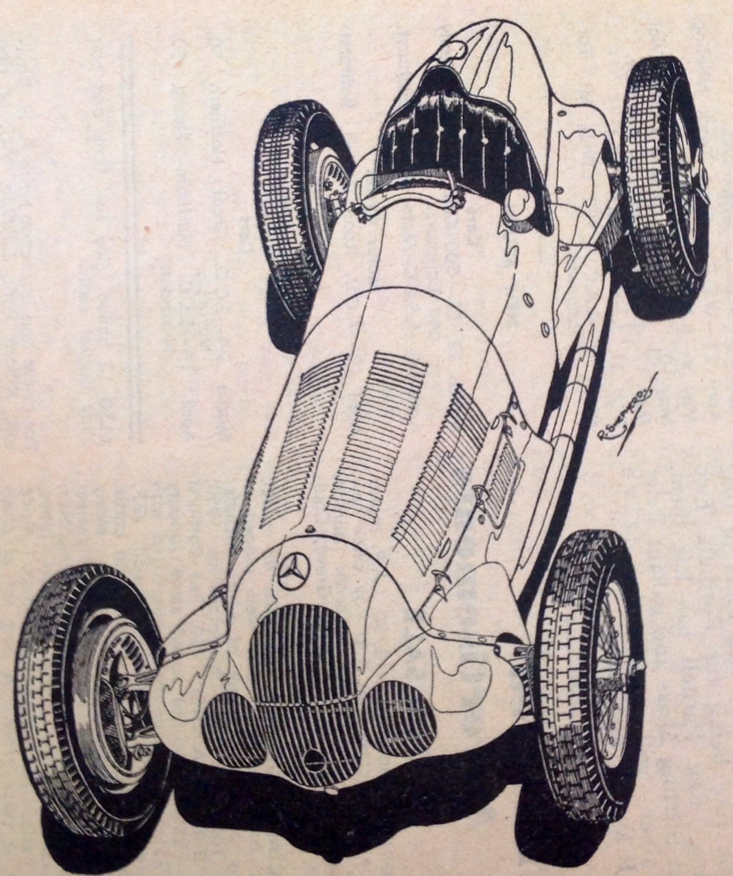 Bob Shepherd line drawing of the Mercedes Benz W125. (Australian Motor Sports)