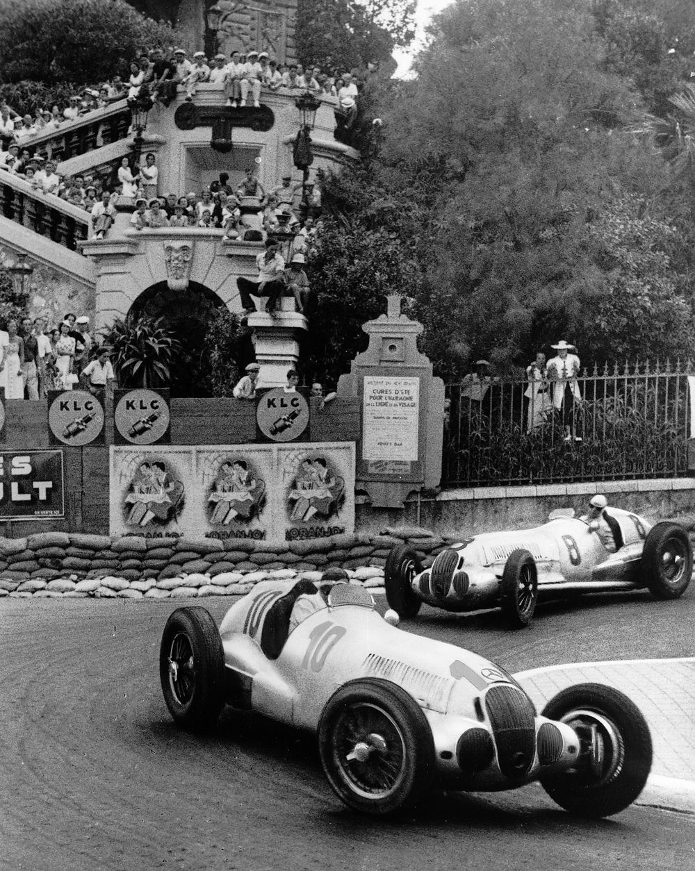 Manfred von Brauchitsch,winner, Rudy Caracciola 2nd 1937 Monaco GP, held that year on 8 August. Loews Hairpin. These 2 were 2 laps in front of 3rd placed Christian Kautz in another Mercedes W125. (unattributed)