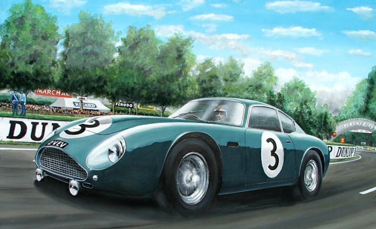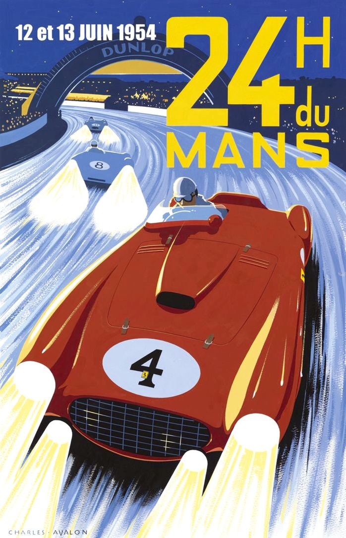 Max Staub’s painting depicts the battle between the first and second placed Ferrari 375 Plus and Jaguar D Type at Le Mans on 12/13 June 1954…