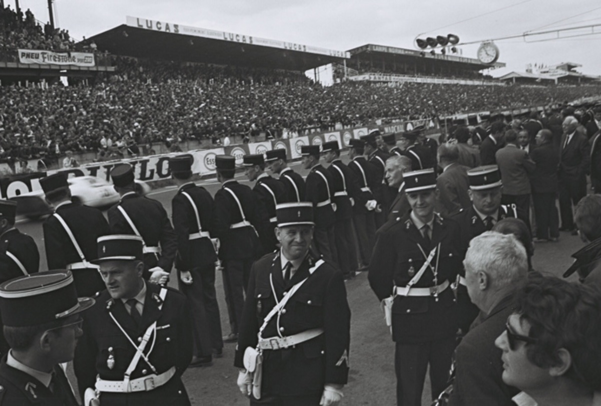 300,000 people attended the race on 10 June in overcast, warm weather, Henry Ford 2 and wife arriving by ‘chopper shortly before the race…