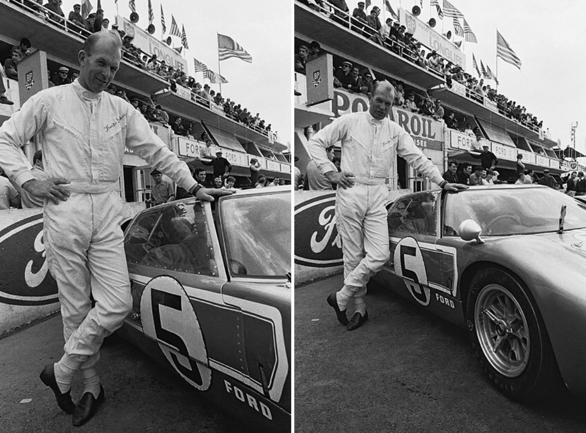 Bruce McLaren jumps out of his Ford Mk4 ‘J6’ during practice. Bruce the pole sitter in this car.
