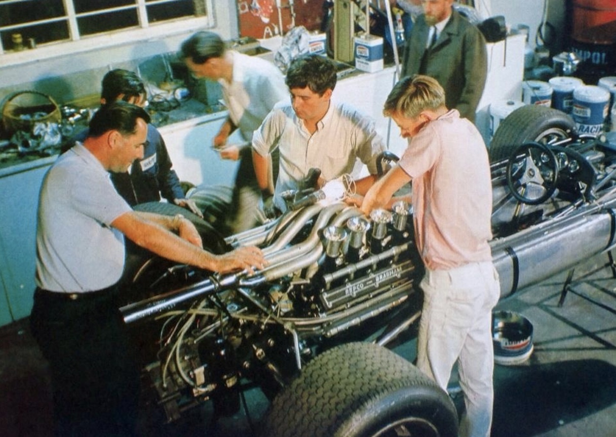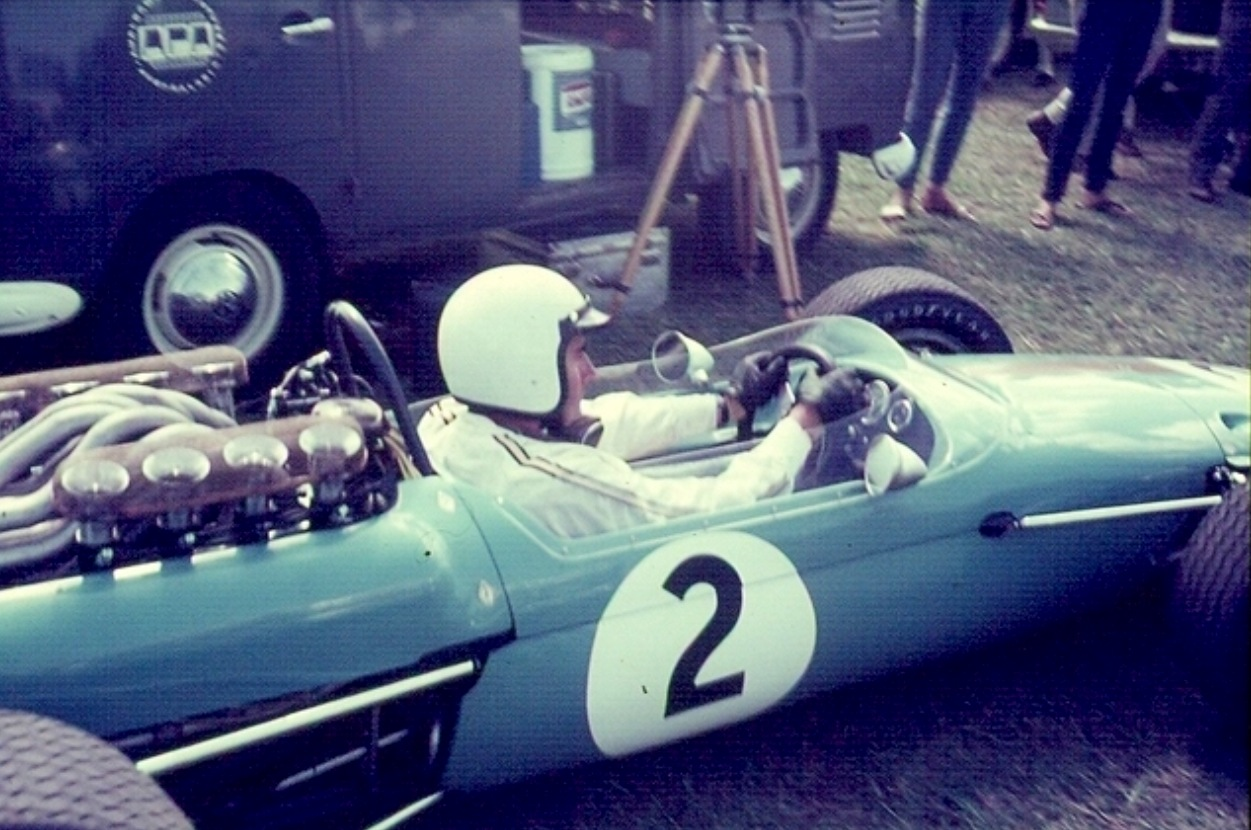 Peter Walker’s BRM Type 15, 7th being given a shove during practice (unattributed)