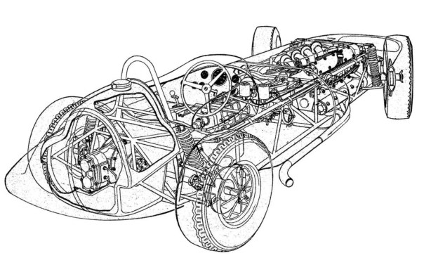 Southgate moved the driver forward 2.5 inches within a longer wheelbase (with removable spacer between engine and gearbox), developed deeper nose fins and placed the front springs and dampers inboard.