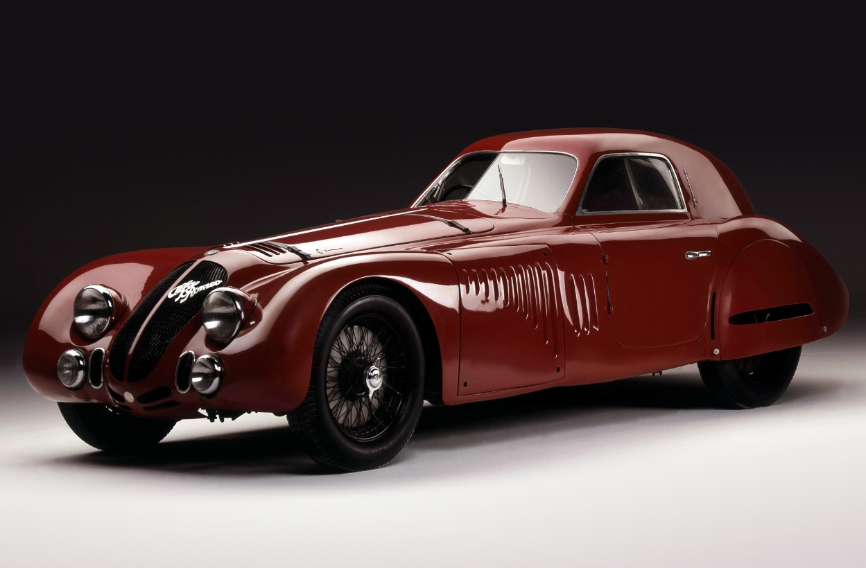 Stunning car for its time, stunning full stop! Studio shot of the 8C 2900B Le Mans after its restoration by Alfa Romeo. Side access panel referred to in the text clear, skilful aero treatment at a time when exposed guards the norm (unattributed)