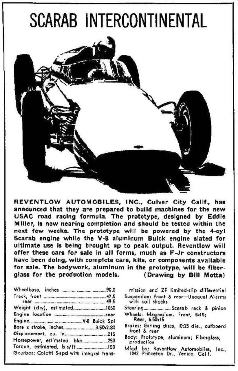 The FIA announced a 3-litre limit for the World Sports Car Championship from the start of 1958 so the Chevrolet-engined sports car had to run in SCCA races rather than internationally as originally planned by Reventlow in 1957.