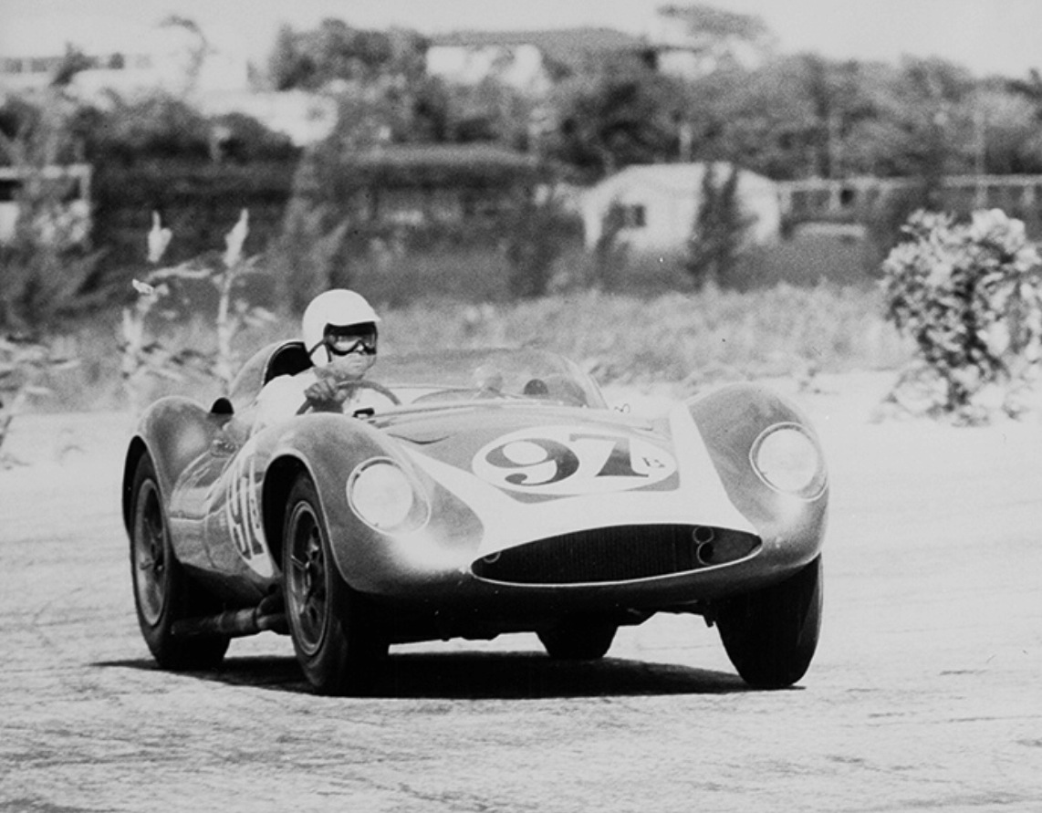Daigh in the Scarab Mk2 Chev during the Nassau Speedweek in early December 1958, Lance Reventlow had the luck at this meeting, but Chuck shared Lance’s car after his car, this one retired with driveshaft failure to win the ‘Nassau Trophy’. Superb lines of the car obvious, Scarab derivative of everything at the time in terms of its styling but individual with it (Dave Friedman)