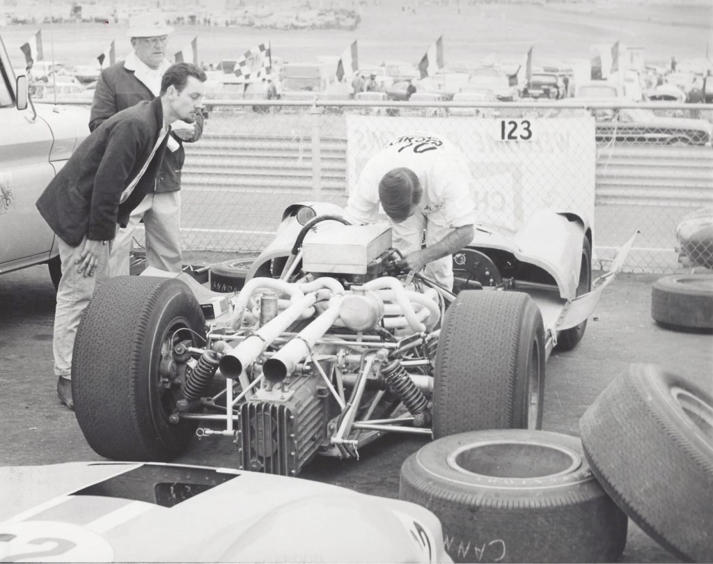 Hoss Cartwright checks out his new Can-Am Genie Mk10B Traco-Olds with driver John Cannon…