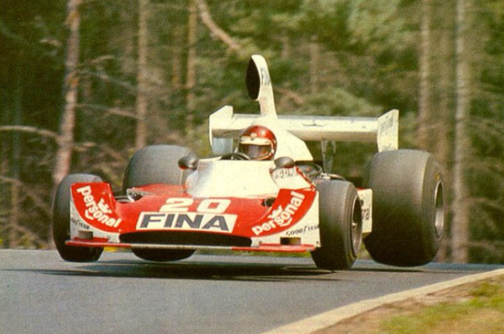 Ian Ashley in Frank William’s FW03 before the engine mount failure, German GP practice 1975 (unattributed)