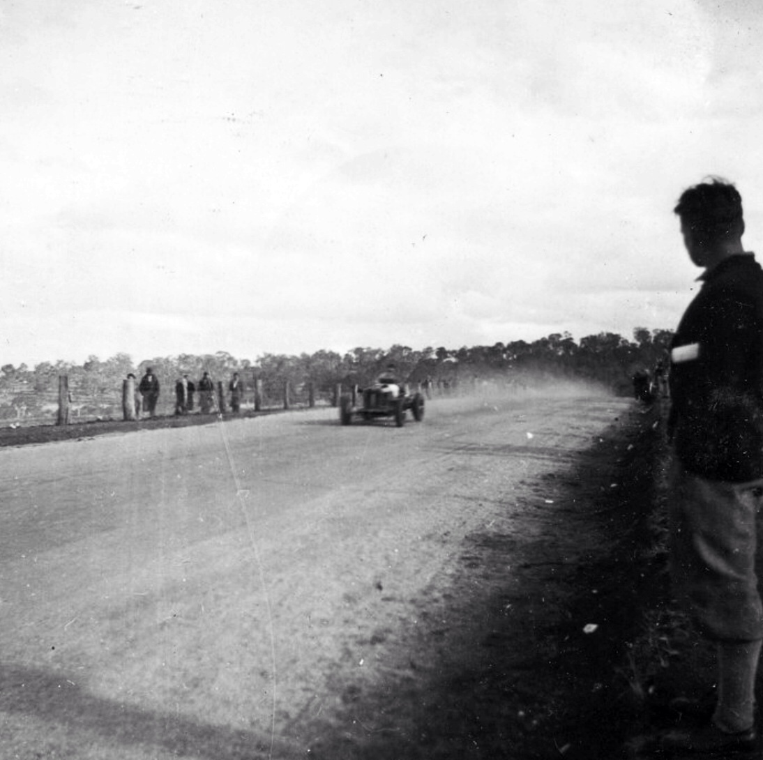 The photographer has created a ‘turn of the century’ distorted effect, the Brabham BT7A Climax looks quite weird , the off-beat nature of the shot enhanced by the cars lack of bodywork to try and deal with the harsh, summer Queensland heat.