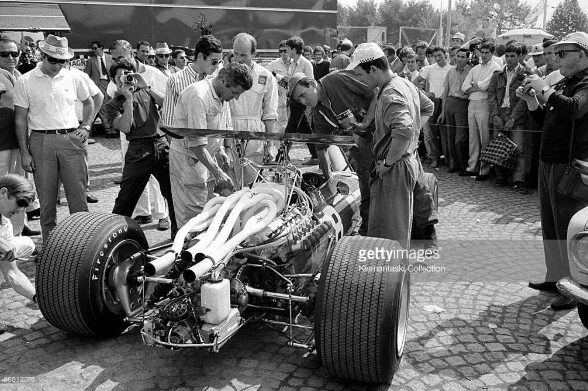 In 1968 the grid was ‘awash’ with Ford Cosworth DFV’s- Lotus, McLaren and Ken Tyrrell’s Matra’s were fitted with them. Colin Chapman waived his exclusivity agreement to the engines upon Ford’s Walter Hayes request that he do so ‘for the good of GP racing’ such was Hayes’ fear of Lotus dominance. Not that Ford’s position was diminished by more DFV powered cars on the grid than less!