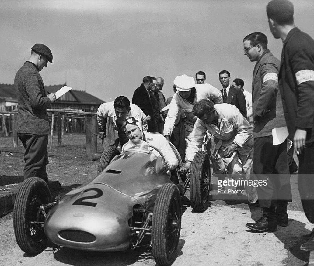 The photo below is Emery being pushed onto the grid in his Emeryson JAP twin 500cc car ‘for race 1, amateur built cars, the very first race at Brands Hatch during the inaugural Brands event on 16 April 1950’.