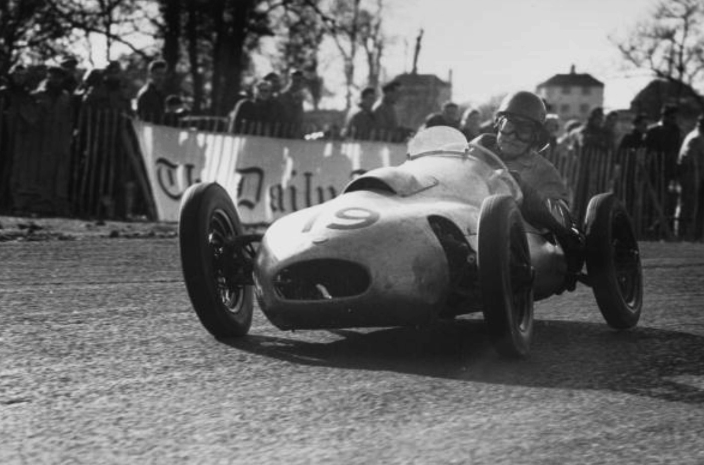 Paul Emery racing ‘the wrong way’ at Brands Hatch in 1951…