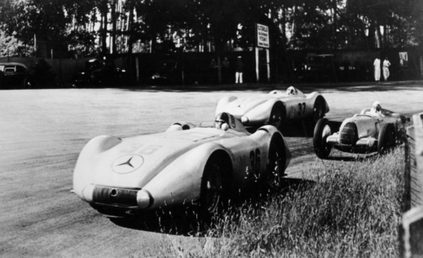 Love this shot for the contrast between Langs leading Streamliner W25 ahead o Dick Seaman’s open-wheeler W125 ‘normal’ GP car