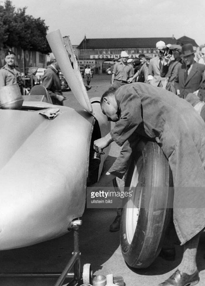 Hermann Lang testing his Mercedes W25 modified 1936 speed record car the week before the 1937 race (ullstein bild)