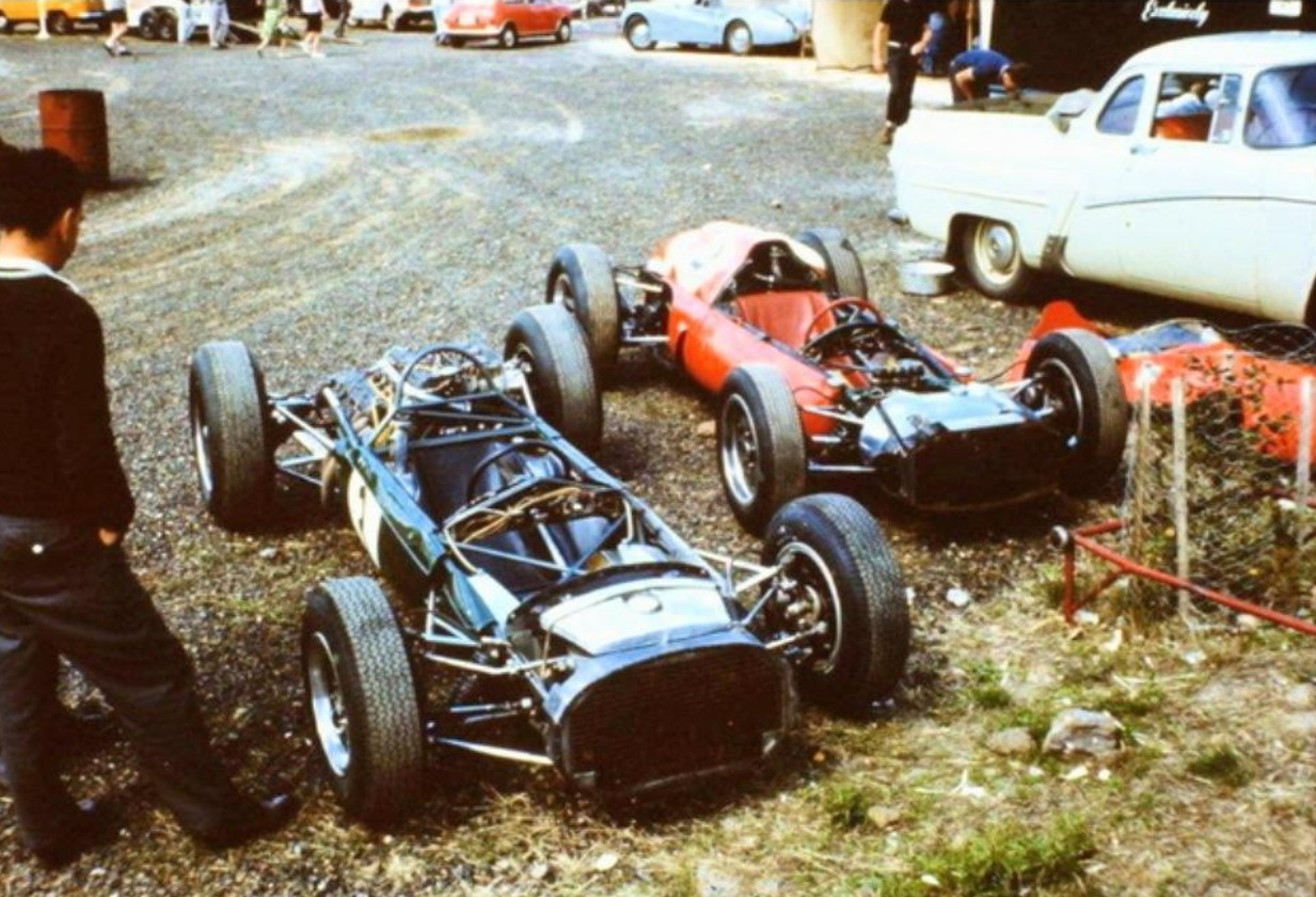 McLaren in the Lakeside paddock in early 1963, Tony Shelly behind (B Williamson)