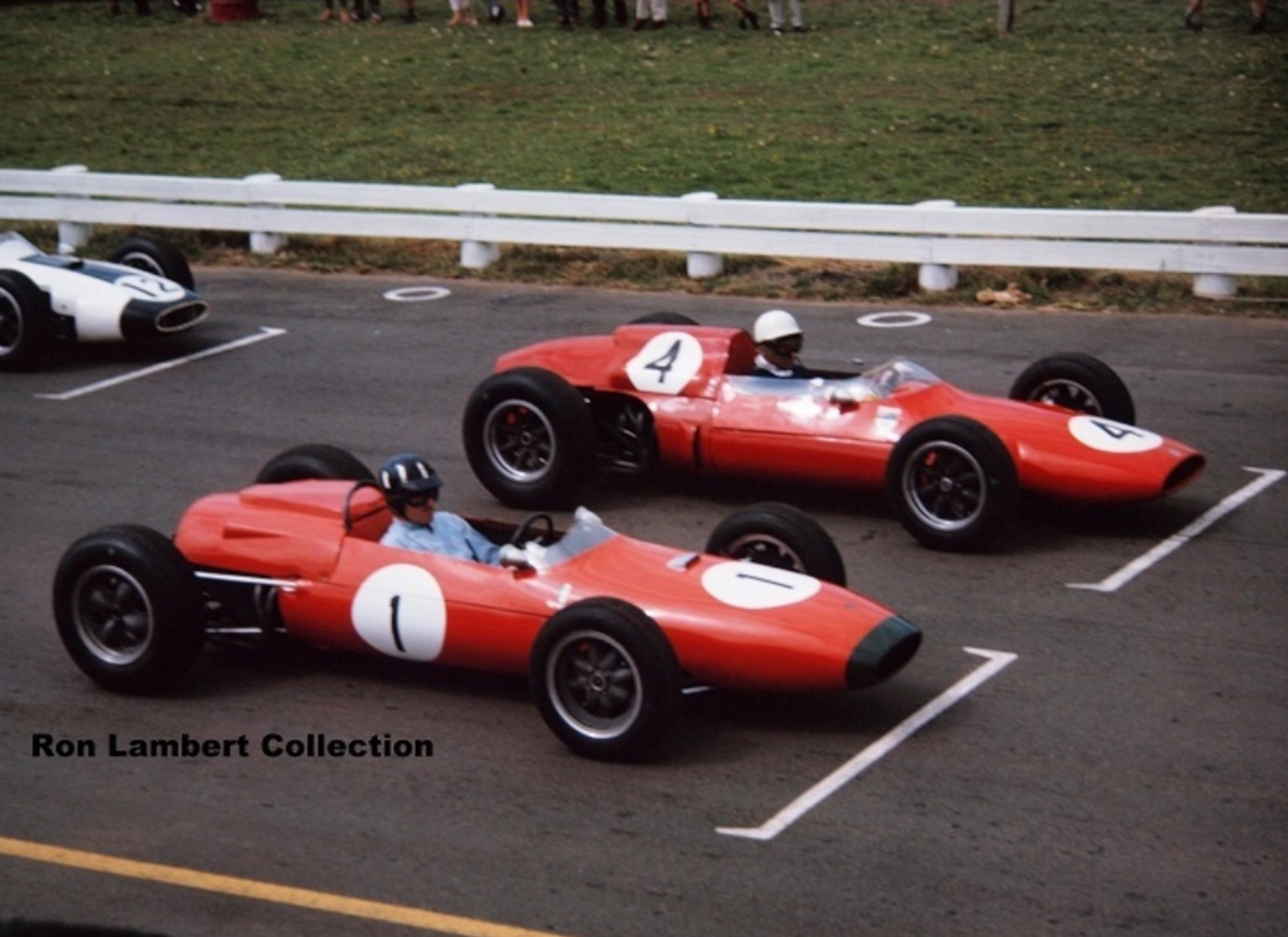Tailpiece: Davo in the best of company: Graham Hill’s Brabham BT4, Davison’s Cooper T62 and the white nose of Jim Palmer’s Cooper T53 Climax, Longford 1964
