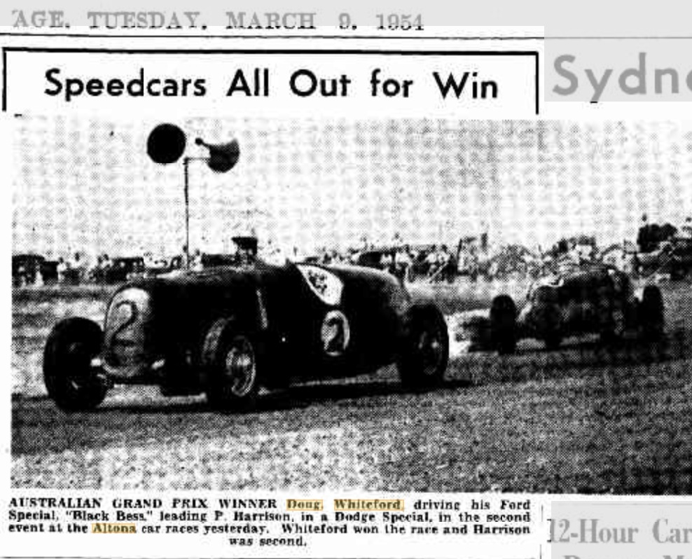 Brabham made the switch from speedway to circuit racing in, one of the characteristics of his driving style was the ‘Brabham Crouch’ over the wheel, its much in evidence down the years and very much present at the 2 1/4 mile Altona track.