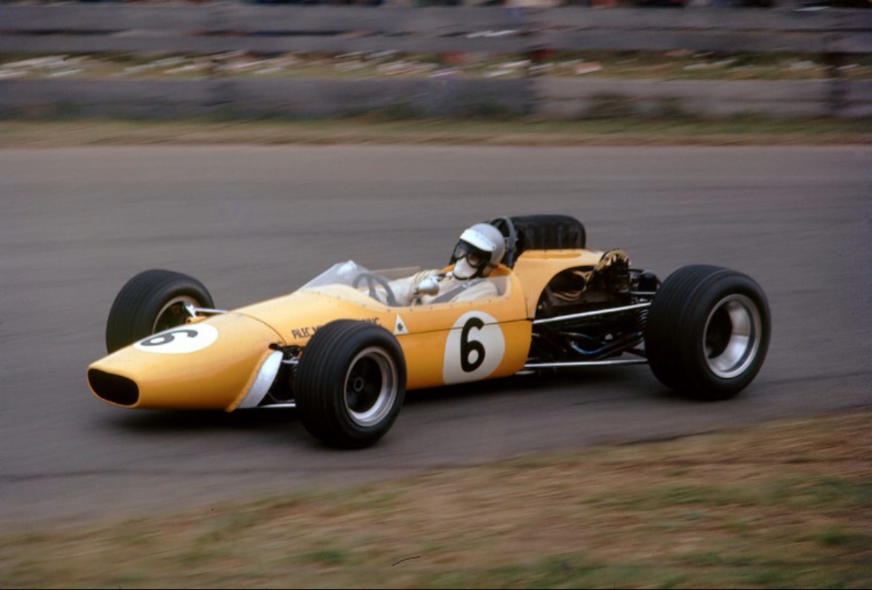Denny Hulme raced a works F2 Brabham BT23(5) FVA in the ’68 Tasman Series comprehensively boofing the car in the New Zealand Grand Prix at Pukekohe on 6 January, the series opening round.