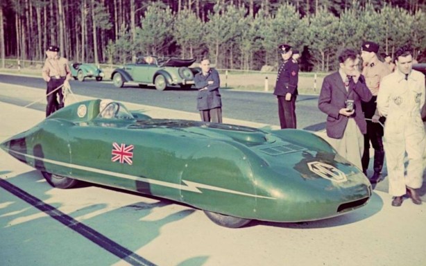 One of those remarkable souls who served in both wars,Goldie Gardner took EX135 with 750cc engine fitted to Belgium’s new Jabbeke motorway in 1946 achieving 159.15 mph.