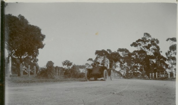 David McKay and passenger doing some camera work at the then new Baskerville circuit, Tasmania in early 1958 (HRCCT)