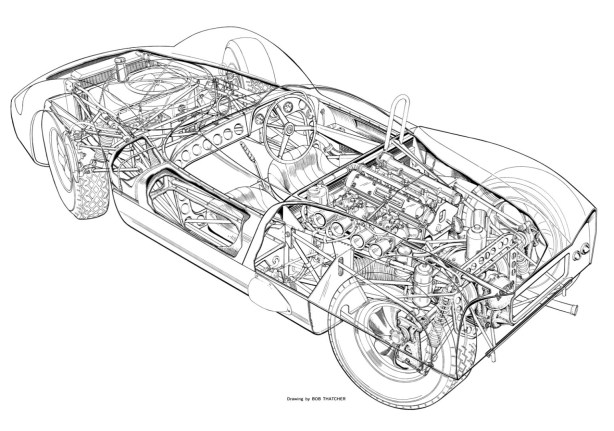 Fundamentally Willie Watson’s design was a shorter, lighter and stiffer car than Eberan Eborhorst’s Aston DB3. The car evolved over just four months making its debut in Reg Parnell’s hands at Charterhall on 23 May 1953.