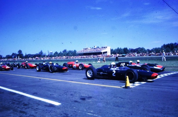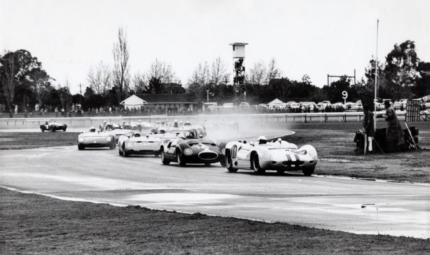 McKay then led with an intermittent engine miss from Derek Jolly’s Lotus 15 Climax, a light rain shower adding to the degree of difficulty towards the end of the race. McKay won from Jolly, Ron Phillips and Frank Matich- Aston DB3S, Lotus 15 Climax, Cooper Jaguar and Jaguar XKC.
