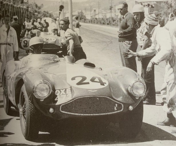 Tony Gaze about to rejoin the May 1955 Hyeres 12 Hour, he shared the car with David McKay- car #20 behind is the Graham and Peter Whitehead DB3S DNF (CAMS)