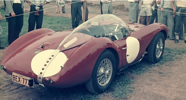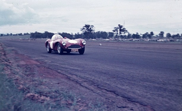 Tailpiece: McKay at high speed in DB3S/102 during a practice run at Carrathool, in New South Wales western Riverina in April 1957…