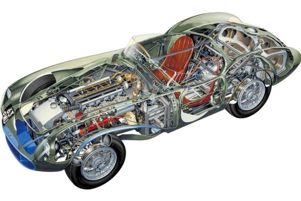 The cars were of course developed extensively throughout their racing life with the works cars fitted with twin-plug heads and 45DCO Webers from May 1954 giving 225bhp @ 6000 rpm.