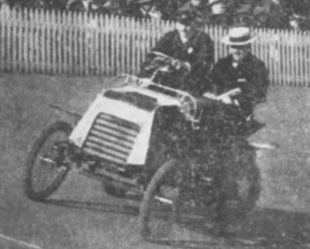 ‘Most interest was shown in the motor cars, of which four were shown. Mr Gordon Ayres brought his car, a very handsome one…but it could not be taken onto the track…with an old set of tyres one of which blew out. Mr H Thomson’s ‘Swift’, which he has just imported attracted considerable notice. The other two cars which raced around the oval were both locally manufactured. One was shown by Mr V Lewis, and driven by Mr H Bernard, and the other was exhibited and driven by Mr J Bullock. In addition to these Messrs J Bullock, H Bernard and the representative of the Massey- Harris Company had motor quadricycles on the track. With all these machines careering round the oval at their best pace the spectacle was in the highest degree interesting. The exhibition was the success of the day, and when the officials of the league saw the impression it made on the spectators they at once resolved to repeat it next Saturday. Mr Ayers car will then be shown in action with all the others.’